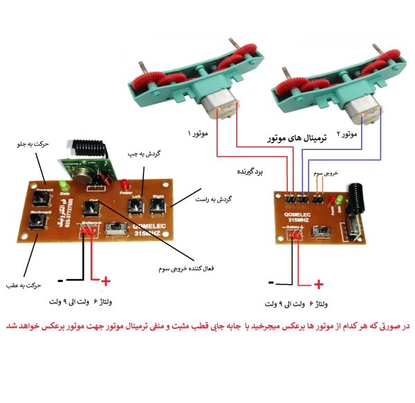 این ماژول قابلیت راهاندازی ۲ موتور و یک خروجی را داراست و برای انواع کاربردهای کنترل از راه دور با برد ۱۰۰ متر مناسب است.